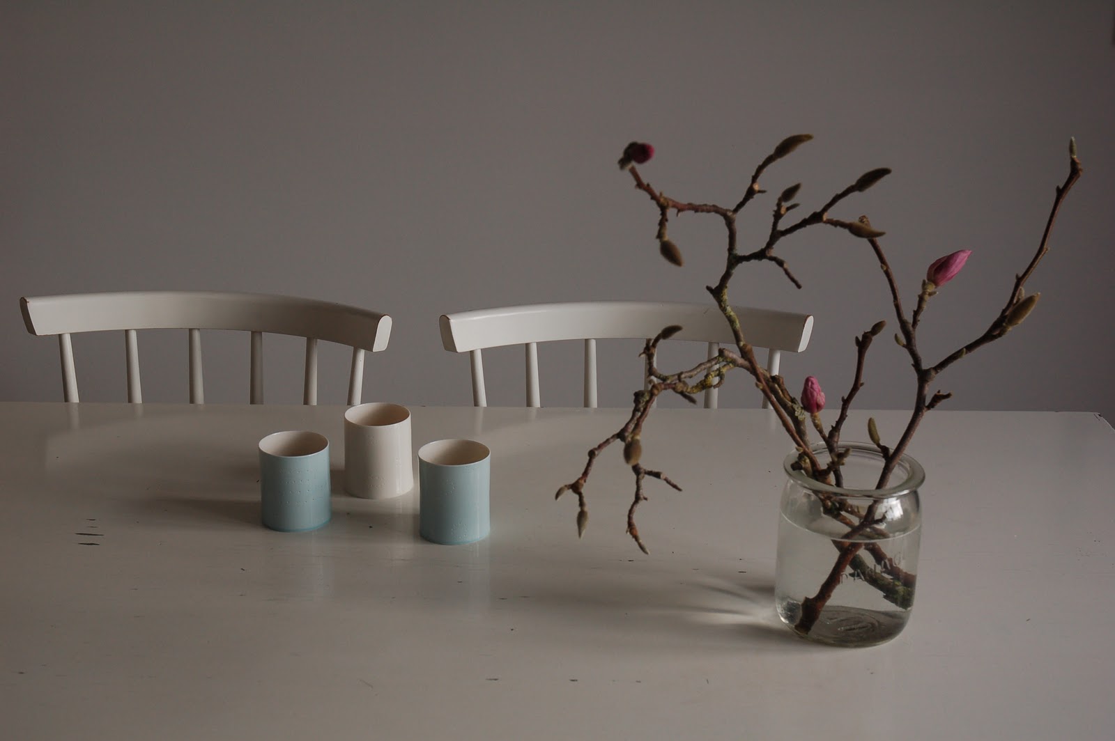 The pipe cleaner peacock was also from the old lady's sewing table and the gray-blue chair is another very good thrift store find from the other day: An original FDB chair, designed by Folke Pålsson back in the 60s and recently relaunched by HAY - so beautiful and simple. I love the colour that changes from gray to blue depending on the light.